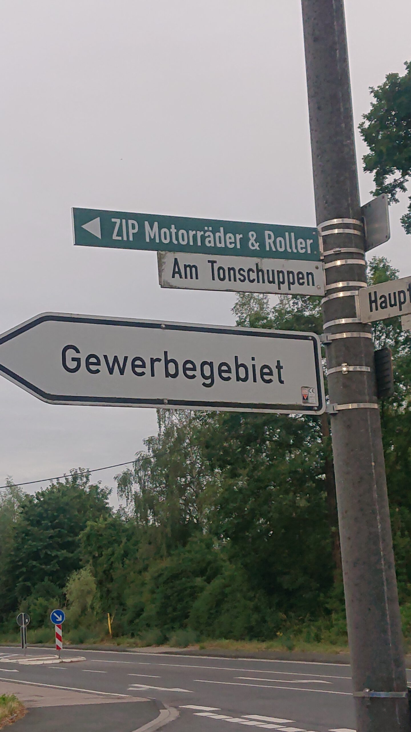 Ganz einfach erreichbar , 500m weiter Richtung Volmershoven , dann 1.Straße links , um den Bogen herum und die erste Einfahrt rechts nach 20m runter in den Hof fahren .